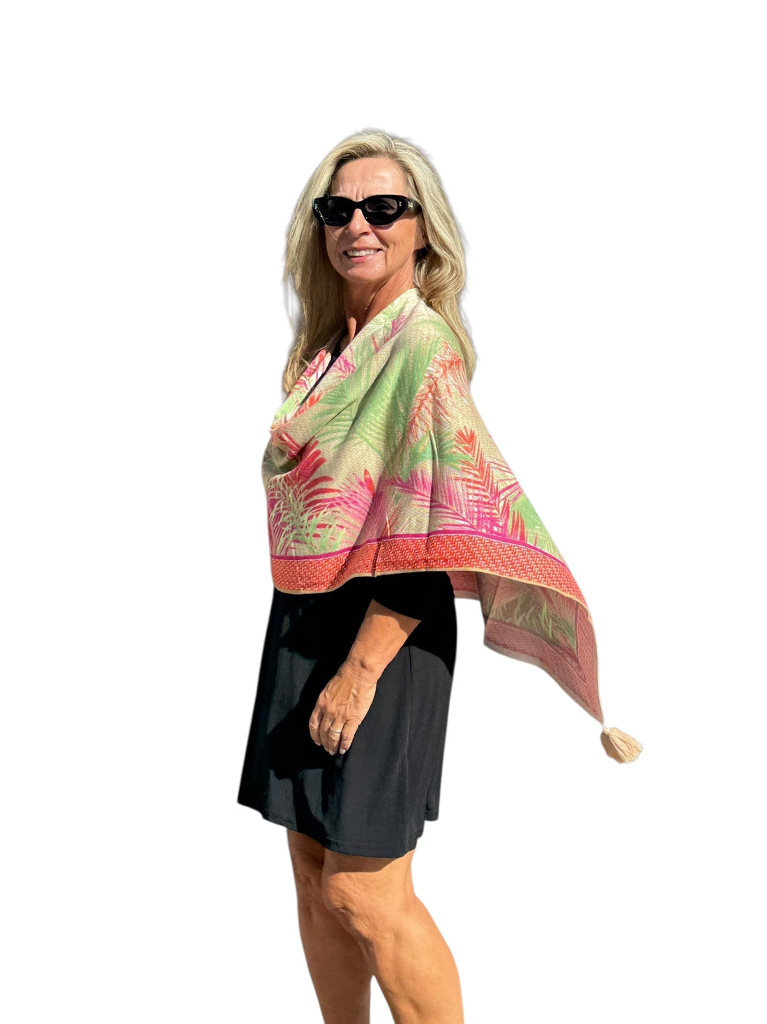 Soft Knit Scarf Jungle Jaguar Ivory/Coral