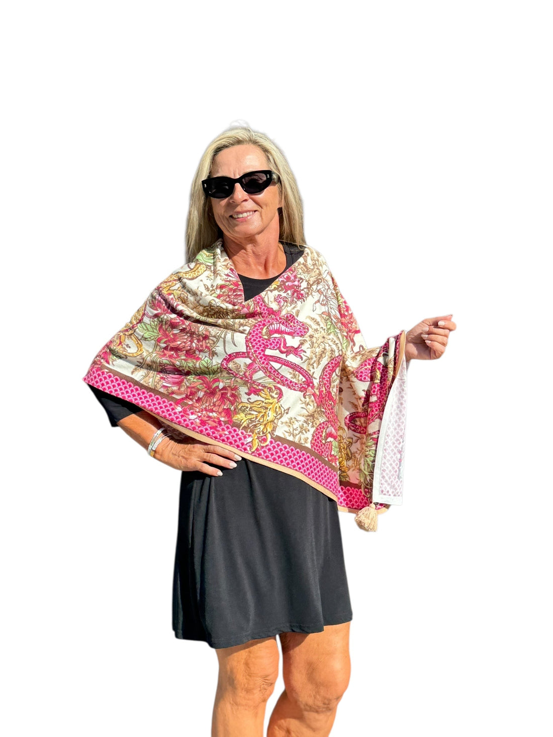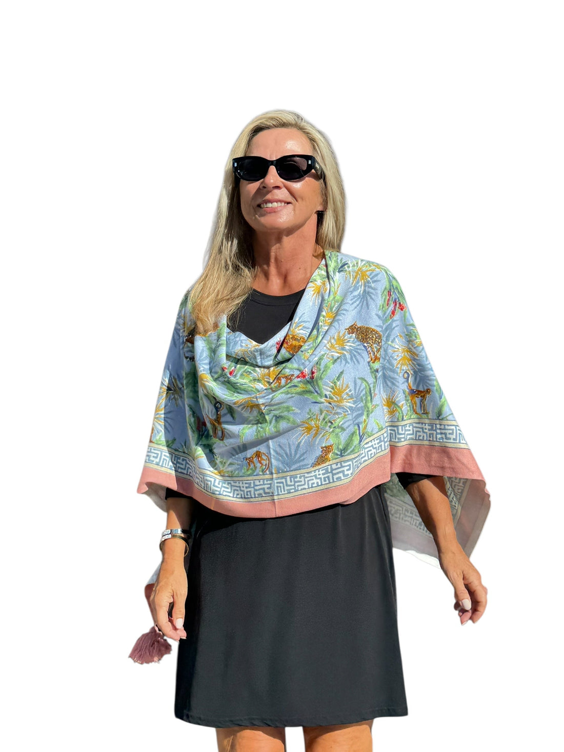 Soft Knit Poncho Jungle Jaguar Ivory/Coral