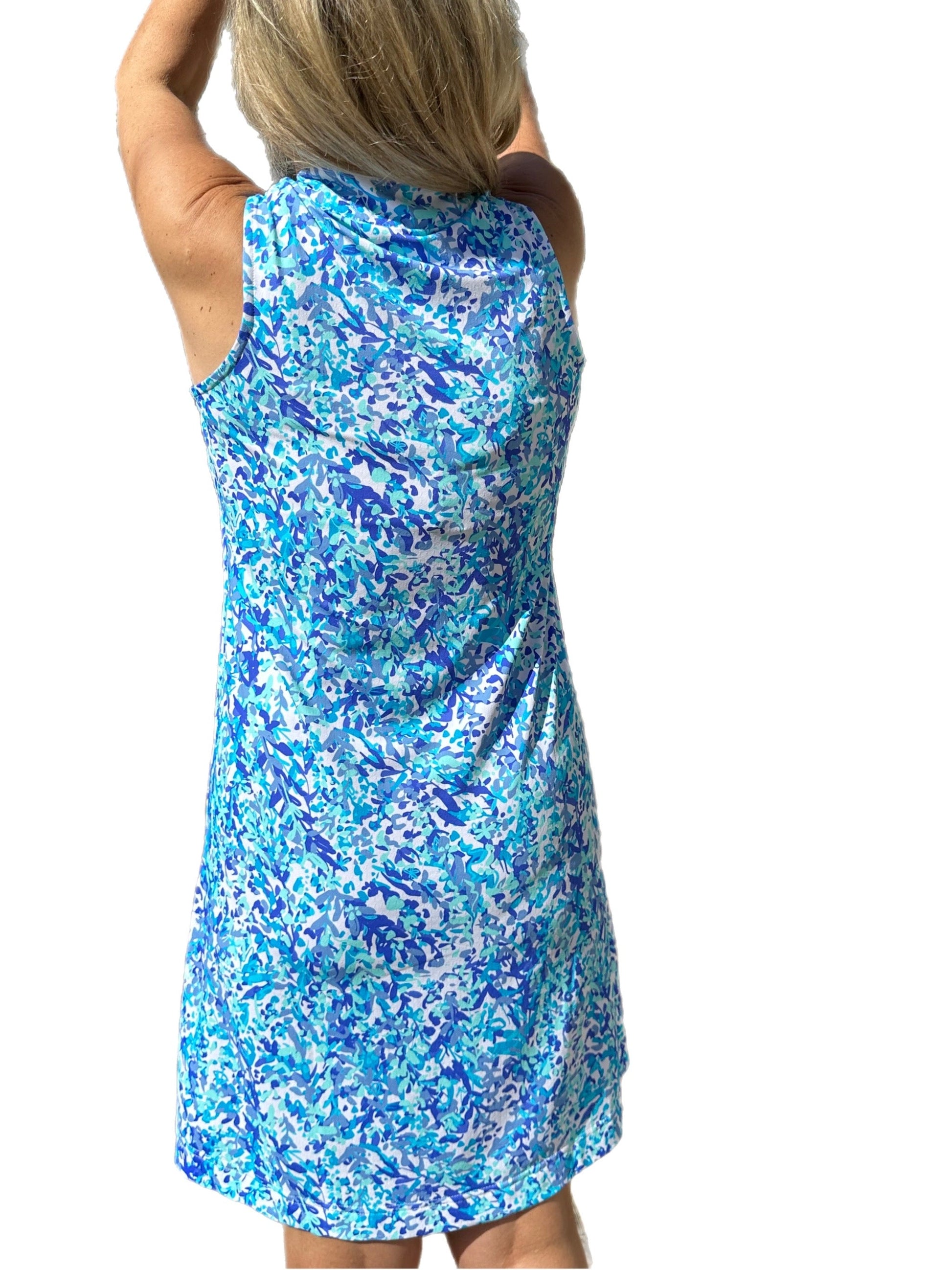 High Zip-Neck Sleeveless Dress with UPF50+ Abstract Blues