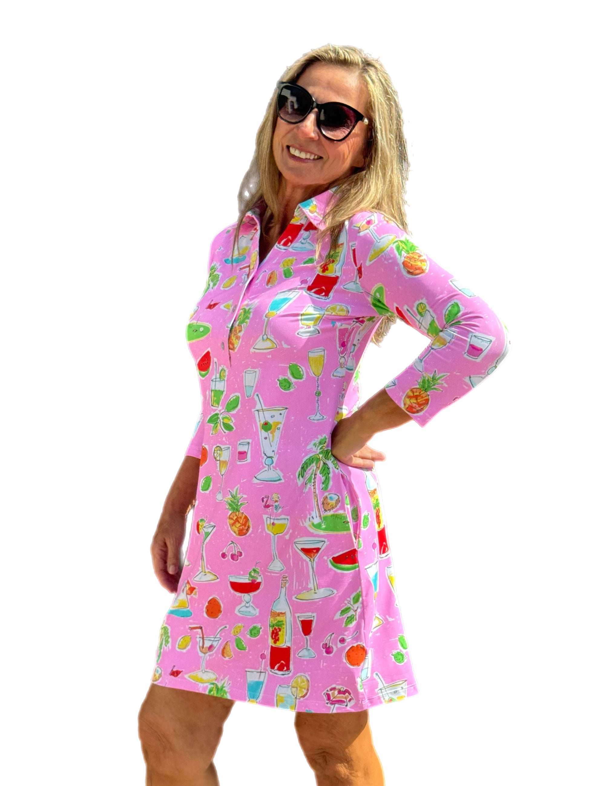 3/4 Sleeve Polo-Collar Dress with UPF50+ Pink Happy Hour