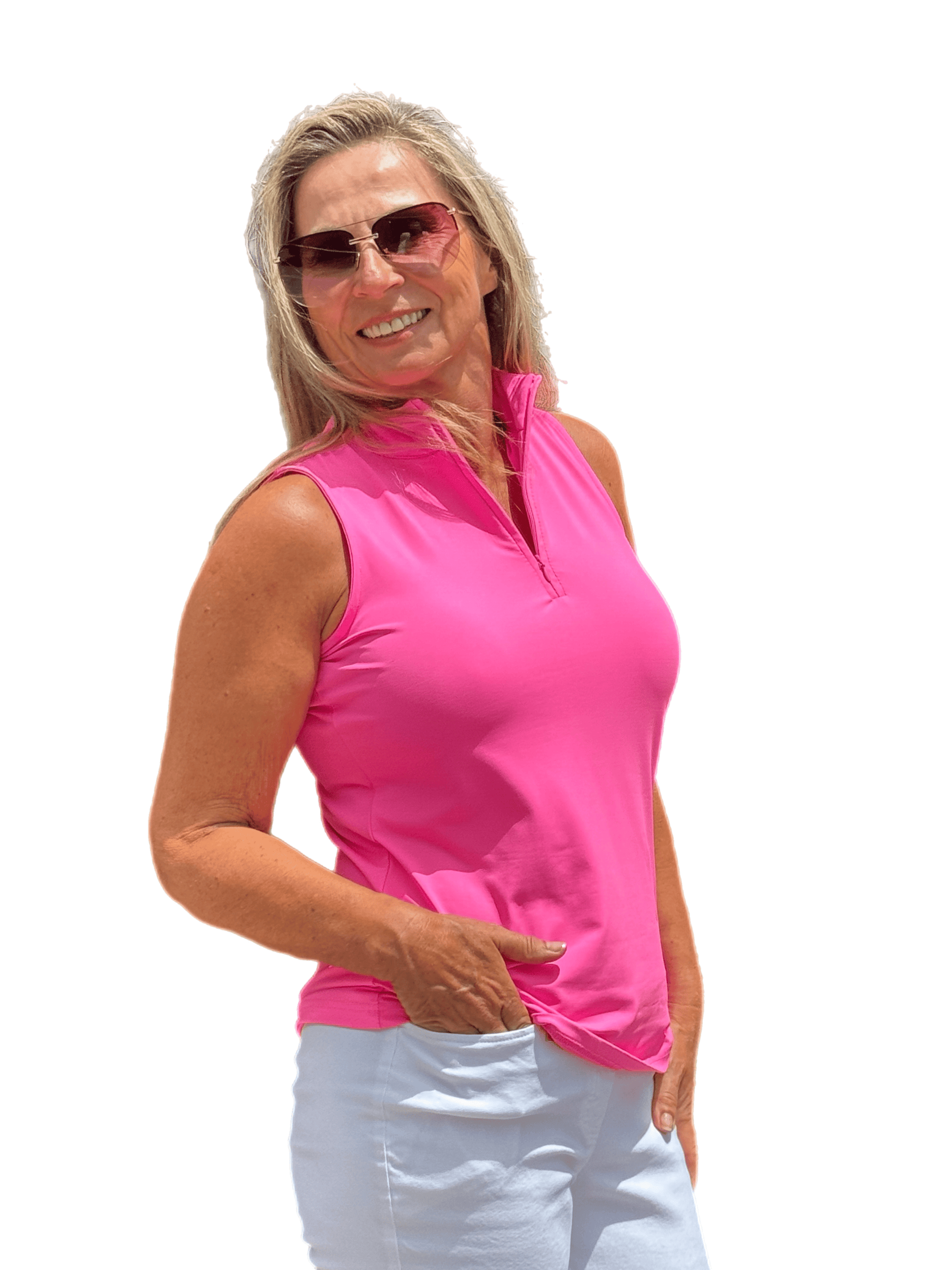 High Zip-Neck Sleeveless Top with UPF50+ Bright Hot Pink