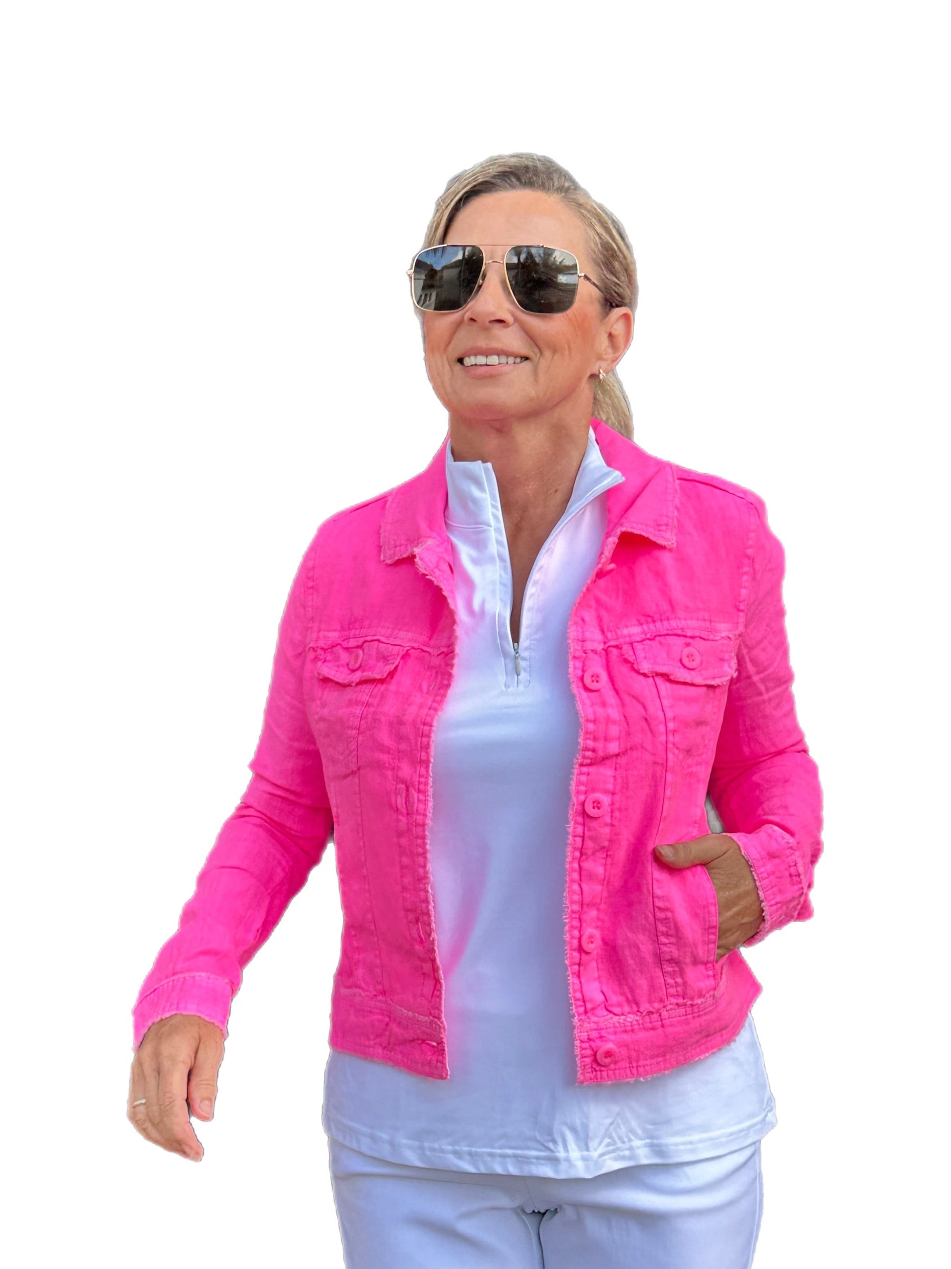 Long-Sleeve Linen Jacket Bright Hot Pink