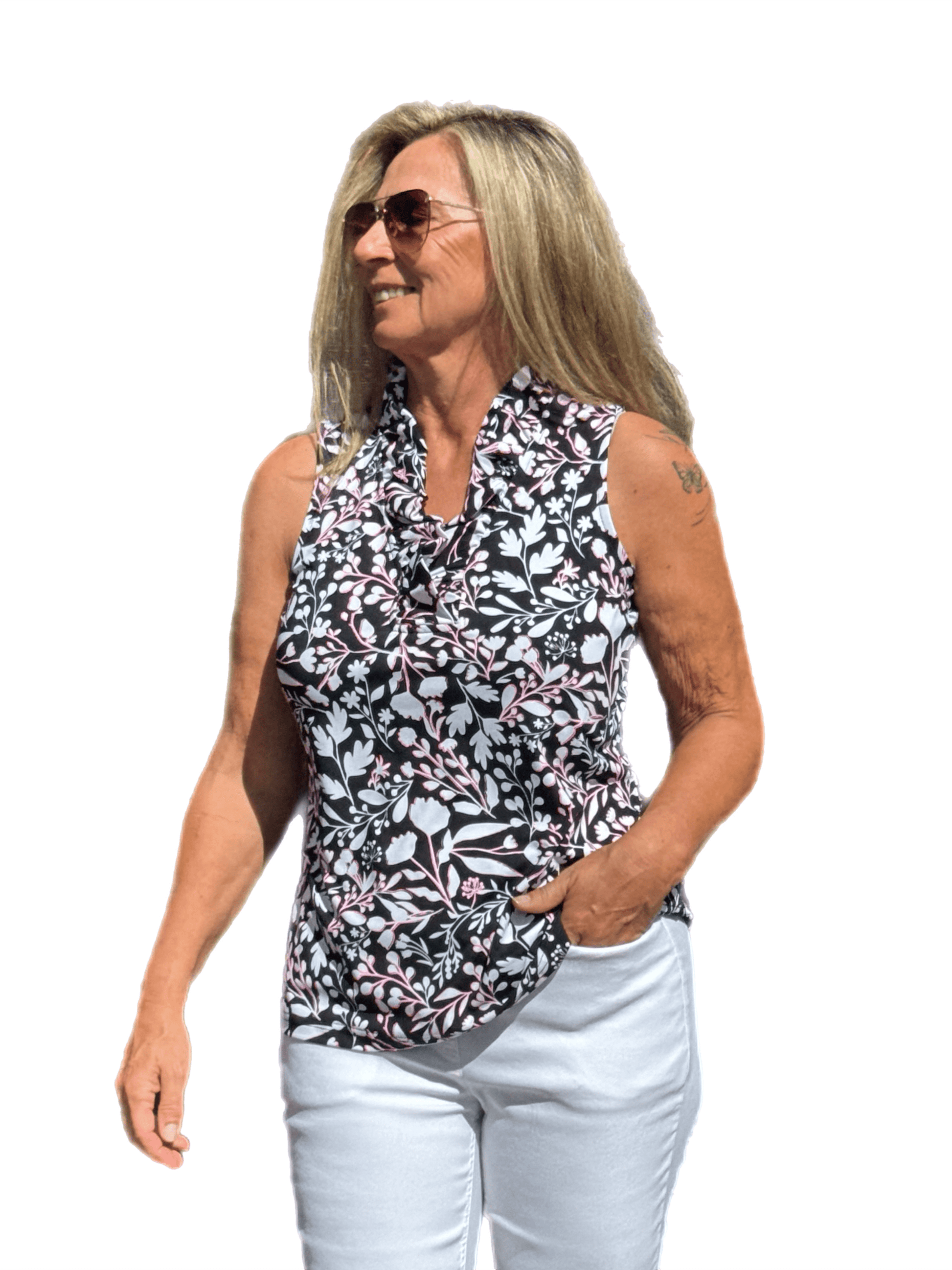 Ruffle-Neck Top with UPF50+ Summer Breeze Black