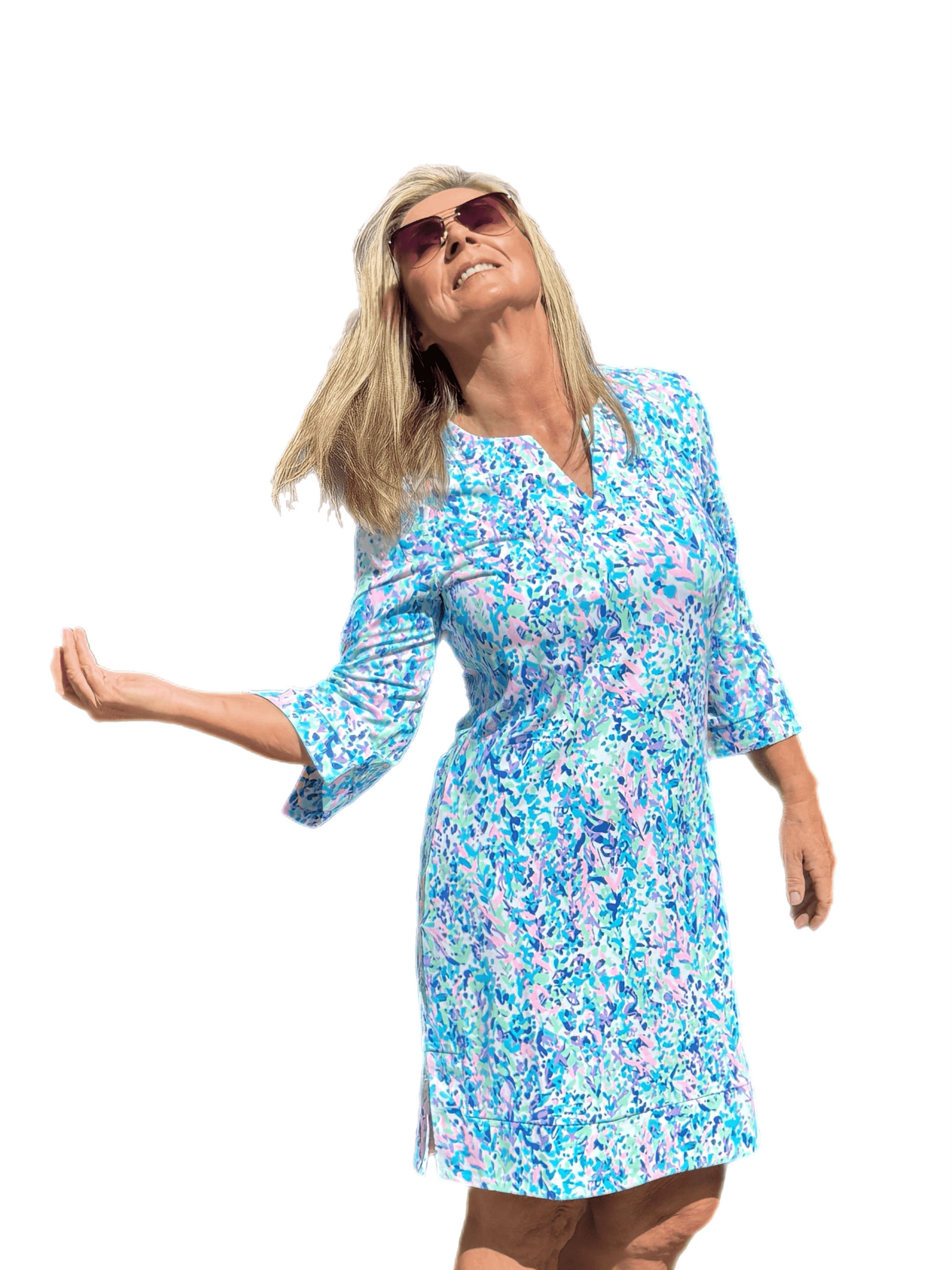 Split-Neck Travel Dress with UPF50+ Confetti Pastel